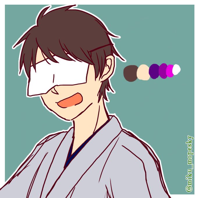 うちの審神者こと十草(とぐさ)くん BGMがドリフやら笑点やら言われる本丸の主です。 目元の布無しver.と現世用の眼鏡ver.もおまけで