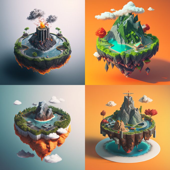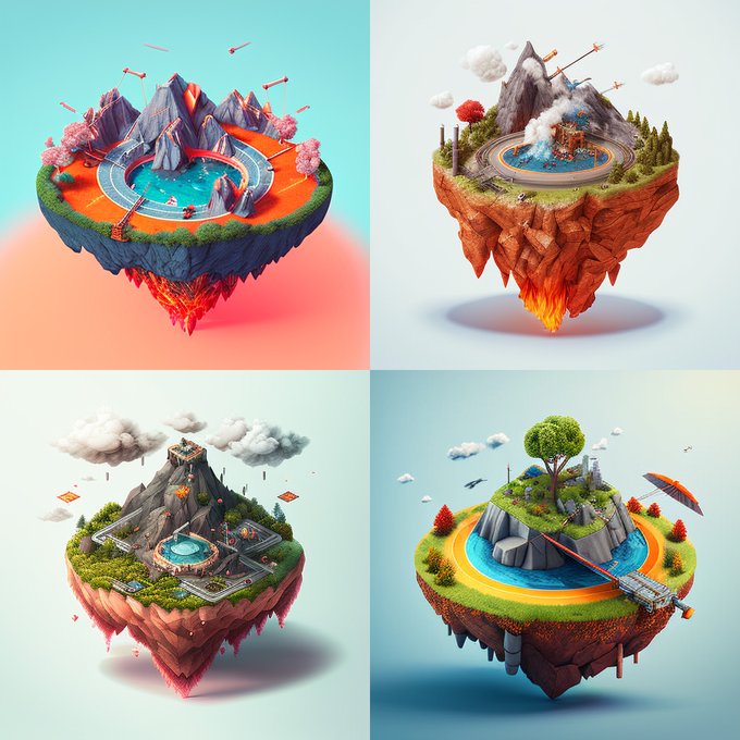 空に浮かぶミニチュアの火山島のプロンプトで、アーチェリーアイランド(?)が出せるか検証。変化(異変?)は感じるものの、的すら出ず噴火して終了。