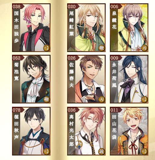 うちの文豪さんたちは今の所こんな感じです。弓の人が多い。