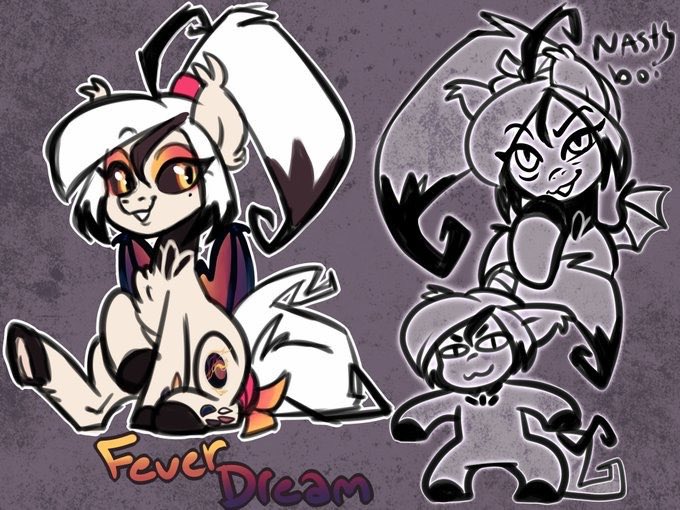 I think the next plushie I commission will be of Fever Dream ... aaaand I want her for Trotcon 👀 Any plush artists to recommend? (Art by @AnnaKitsun3, @/zoliklispp, myself and @/burgerkiss2) 💕🖤