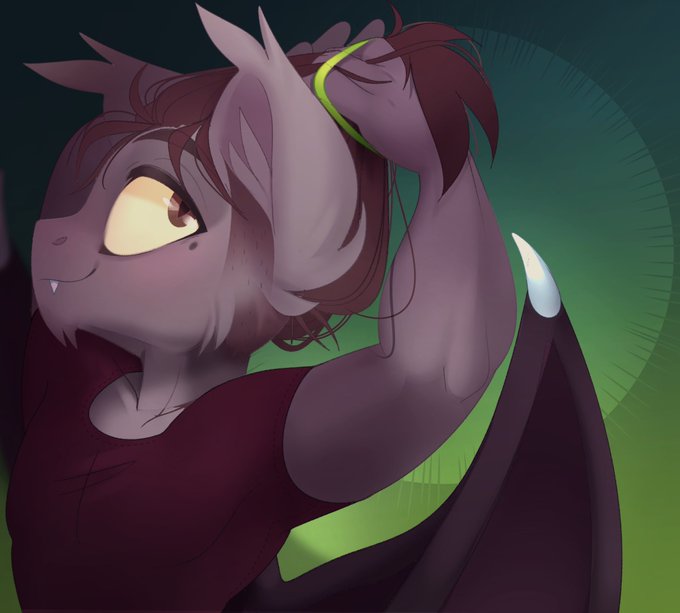 Qt boi tying his mane up— m a y b e @SpicyRedFox will name his bat pony someday