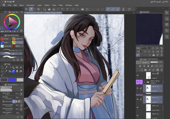 فرشاة اضافه الالوان ودمج الالوان ، للامانه ما استغني عنهم للشعر والبشرة والملابس وعطيتكم مثال تحت 🌸