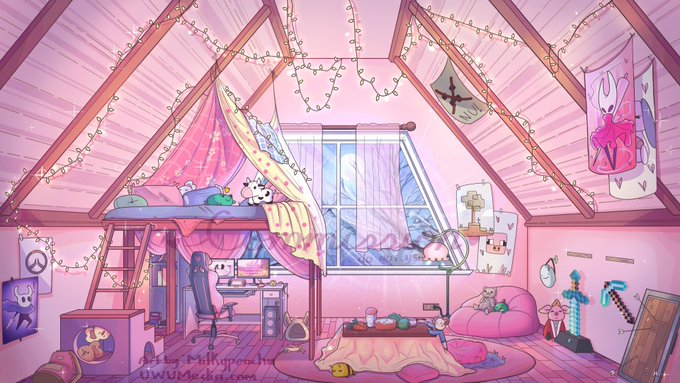 I've never posted this here~ but heres a very pink room BG i made ^^ it serves as a sample for @uwumedia and has lots of bunnies │・ω・`)✧・゚♡