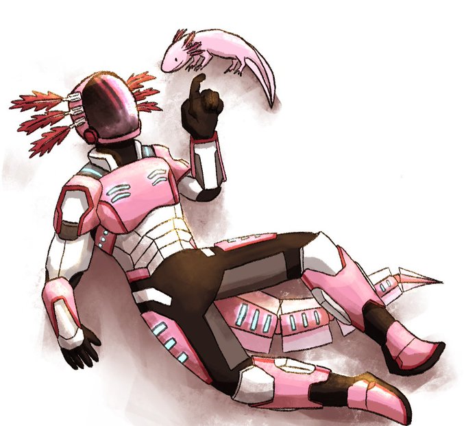 (1/2) X-olotl was inspired by sci-fi armor, beesuma was inspired by superhero armor and race car drivers, and stridesuma was inspired by firefighters! All were also inspired by their respective mobs too ofc
