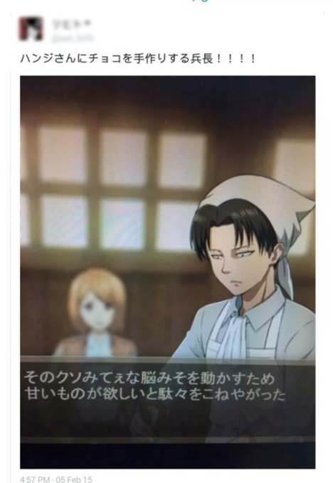 Hange has a sweet tooth? Maybe that’s why Levi made them chocolate on Valentine’s Day... and because he’s in love with them 😊