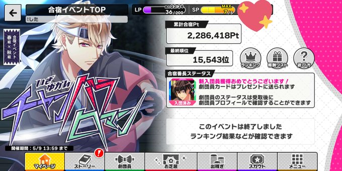 初めて走ってみたけど、壁は高かった…至さん1枚と真澄くんは頂けたので(*ฅ́˘ฅ̀*)🎵