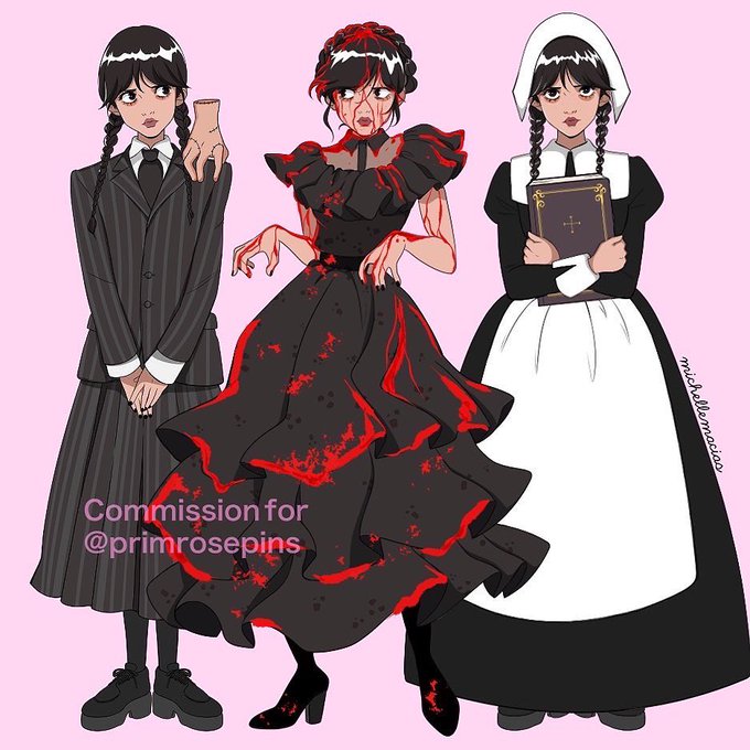 Wednesday by me for primrosepins 💖💖🖤🖤🖤👋🏼 #wednesdaynetflix #wednesdayadams