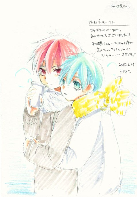 かぬえもんさん!スケブ頼んで下さりありがとうございました! 冬の赤黒ちゃん…最高ですよね…!いちゃいちゃさせたい(*´ω`*) @argent_caldron