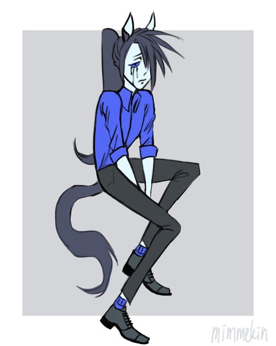 Drew my #HazbinHotelOC, while I work on something bigger. His name is Rüdiger and he's a tall, sad horse demon.