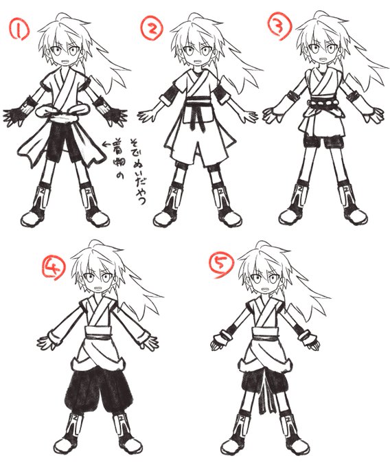 児雷也くんの衣装案は5つありました!