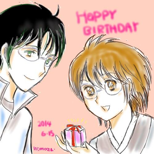 @sukideppa お誕生日おめでとうございます。ほぼワンドロな時間で描きました。Wメガネで癒されてくださいませ~!
