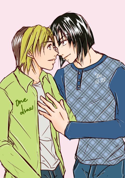 のキャラ、和馬さんとしおん君を描かせて頂きました(*^^*)💕 和馬さんは、メタルバンドのプロドラマー。