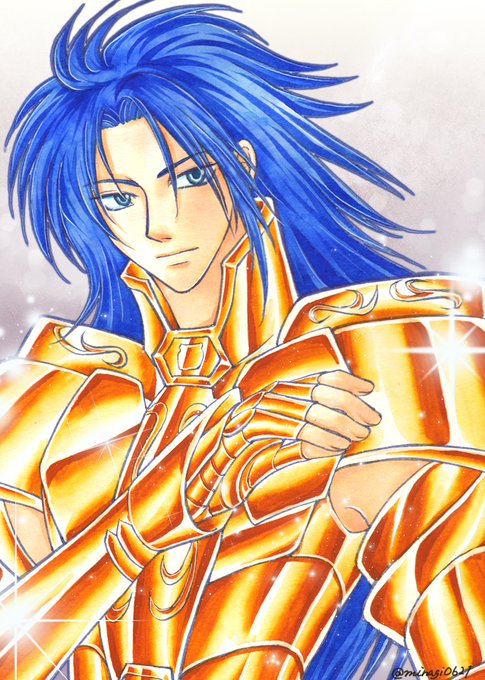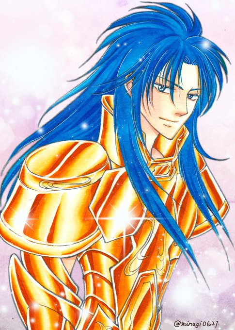 カノン、お誕生日おめでとう💐 サガとカノン、髪の色をちゃんと違う青にしたのに、パソコンに取り込んだら同じ色になっているー! #双子座のサガ・カノン生誕祭2021