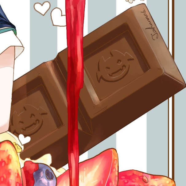 お顔が生意気っぽく描けてお気に入りってのと、チョコがヨハネ印なんだよっていう