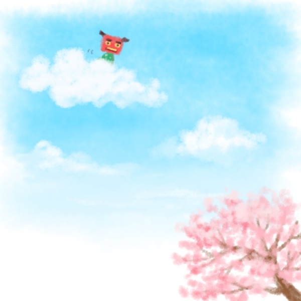 #一日一絵 №12 #春の睡眠の日 #空飛ぶししまい #NekoPaint 寝る直前に眠すぎて見えた何か、みたいな感じの絵です。