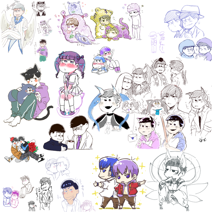 次男、四男、24でキャンバスを埋め尽くす絵茶終了しました! こちらまとめになります! 早く起きてさん、しーもさん、すずりさん、さっちょさん、にゃろさん、時生さん、眼鏡男さん、見学して下さった皆様ありがとうございました! また宜しくお願いします!☺️