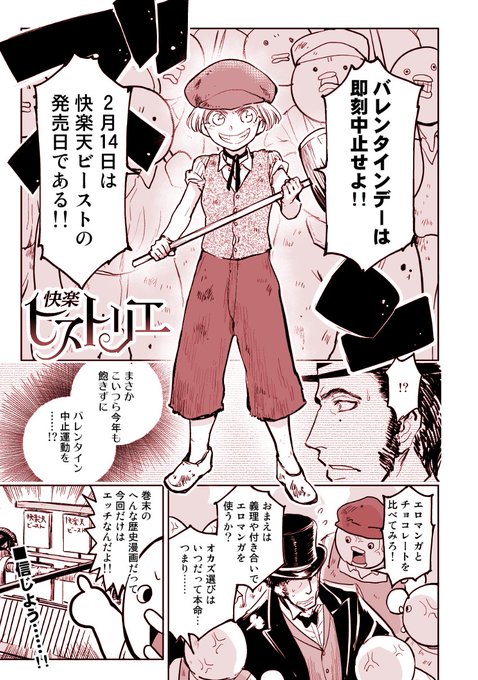読者諸兄! 今日は快楽天ビースト3月号の発売日だ。今月号の『快楽ヒストリエ』は産業革命篇。資本主義が我らの尊厳を歯車で噛み潰す前に、反撃の鉄槌をバレンタインにぶちかまそう。web配信のコミフロはこちら↓