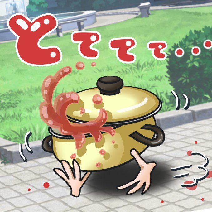 走る(?)鍋を描いてみたけど、花柄にしたほうが可愛かったかも。