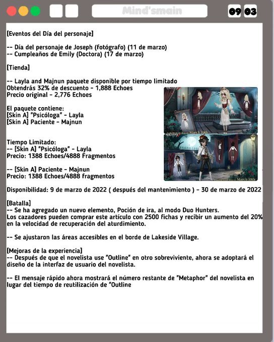 Notas del parche - 9 de marzo