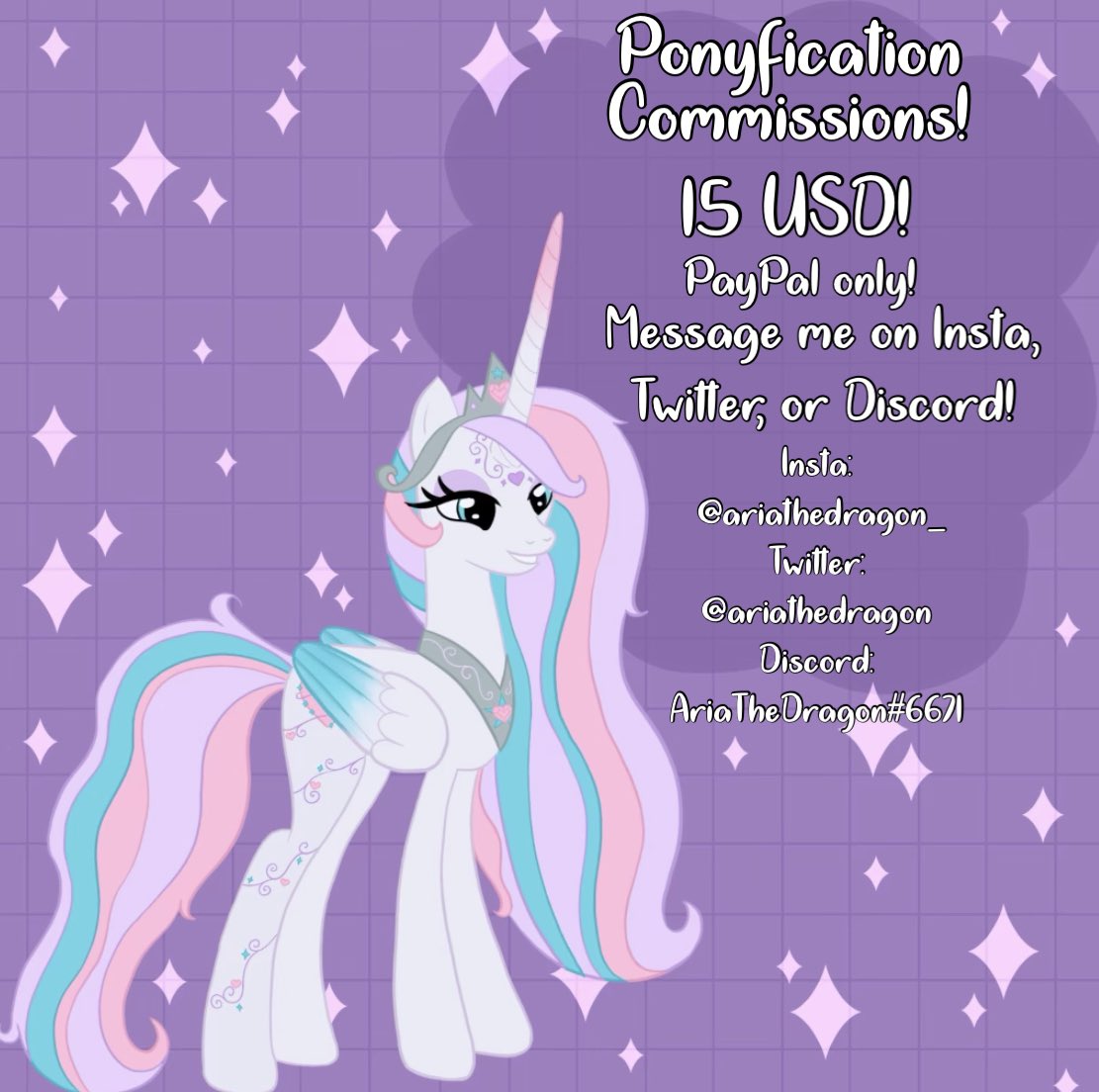 Surprise! I’m going to start taking commissions for ponyfications! They can be of you! Your fave oc! Or even your fave character from another show!!! Message me on any socials listed if you’re interested!