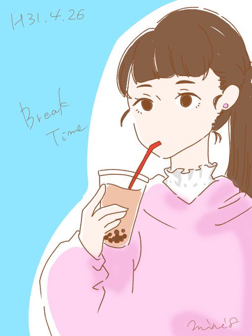 再! #1日1絵 #もちまるズ #タピオカ