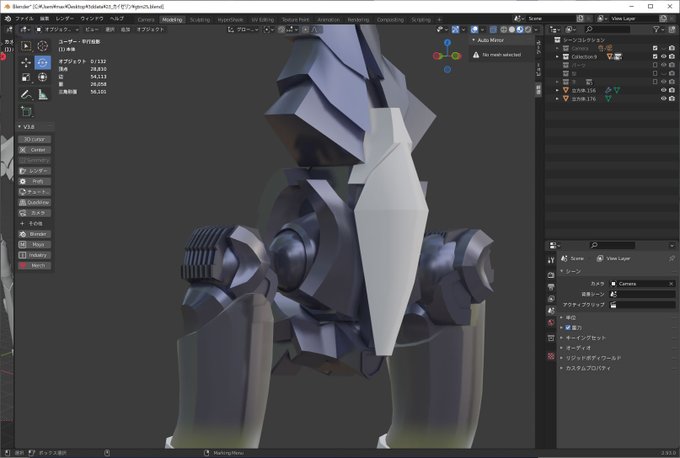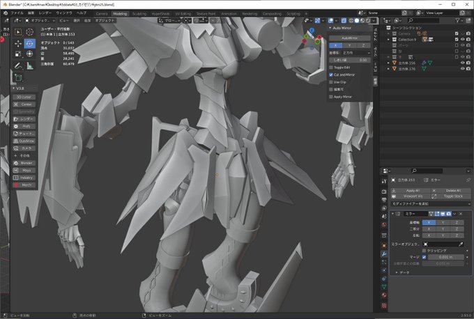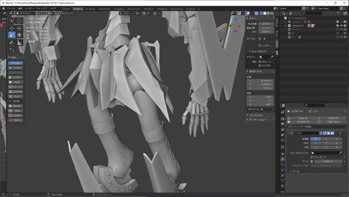 Blenderでカイゼリンができるまでの過程 各パーツが複雑な形で形状を理解するのにかなりの時間を費やしました。 人型だけど独特な関節とスタイルでバランスを取るのに苦労しました、なんかと完成出来てよかった(^^)
