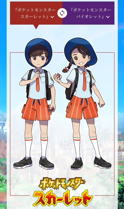 ポケモン新作はスカーレット、バイオレットはスカーレットは英語(scarlet)、バイオレットは英語(Violet)だけど略すとどうなる🤔?御三家はこんな感じで主人公はこんな感じ!