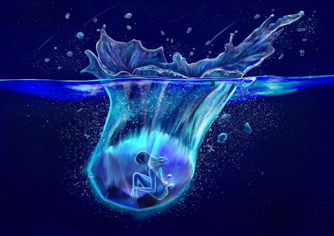 MIS.W現役での最後の発表会用に描きました!卒業制作です(?) 1年前、2年生で初めてデジタル画を始めた時、水を描けるようになりたいな…と思っていたことを思い出したりしていました 少し実現できたかな?? #みすCG研発表会2018