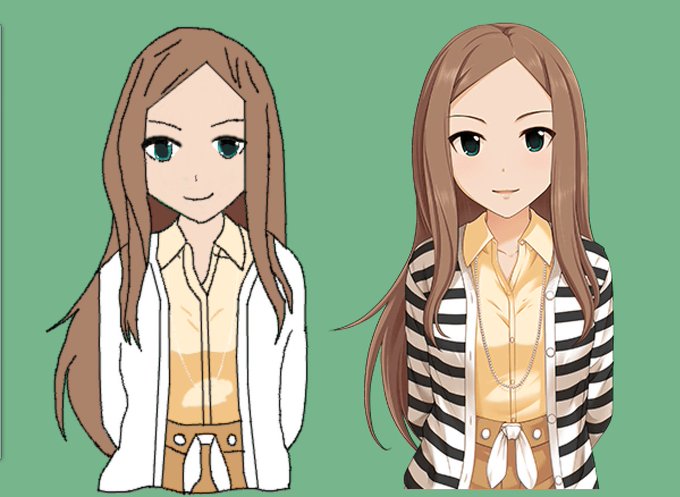 デレステや改変衣装、ミリマスなど幅広く立ち絵を作られてます。