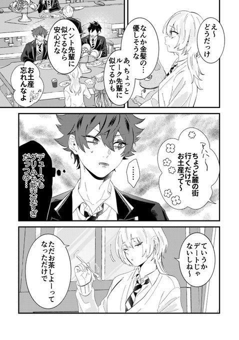 「監督生にブレジュの感想を聞くカリム」の カリ監🎤🎶 お題ありがとうございました🐈⬛💎😘 #twstプラス