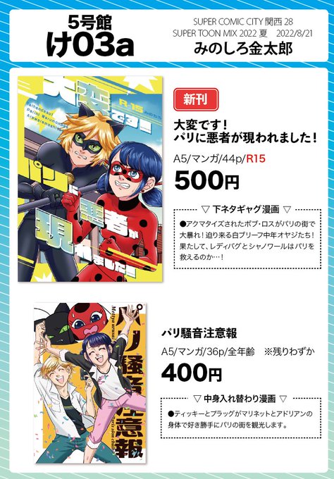 8/21 SUPER COMIC CITY 関西 28 SUPER TOON MIX 2022夏【5号館け03a】にスペースいただきました。 ↓お品書きの新刊と既刊(残部少)を持っていきます! どうぞよろしくお願いします〜! https://t.co/WqyP6k7f5F