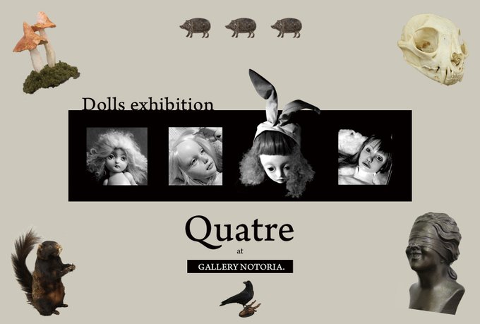 2016/5/10(火)~15(日)創作人形グループ展『quatre』@渋谷ギャラリーnotoria. ( https://t.co/HaqEn6lDWv ) です。わたしは14日15日に終日在廊します。新作ありません……!