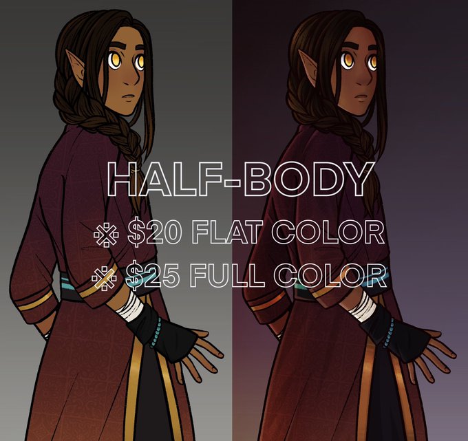 just half-body and headshot size this time, flat color or full color or whatever color you want