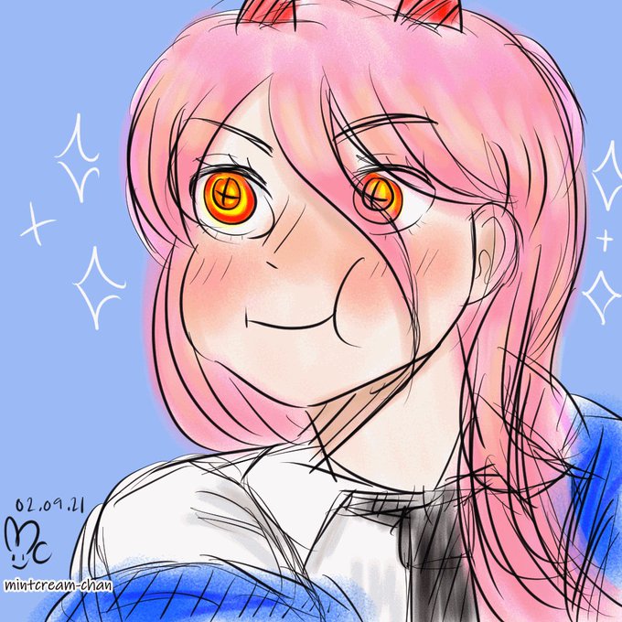 Oh, I hate how the colors are going to look so wack, but I'll do it anyways. A redraw of the Chainsaw Man volume 11 cover (cause I'm so proud of him) + an alternative cover I wish happened haha. #chainsawman #csm #myart #digitalart #mintcreamchan #ArtistOnTwitter