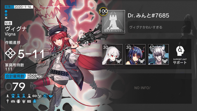 アークナイツレベルカンストしました。 レベル100までに育てた面子です、カンストさせてもこの人数の昇進2レベル30スキル7 くらいでした! 無限に理性足りない #アークナイツ