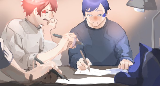 テスト前、一夜漬け会 「こんなのぜったい無理だ」 「要領いいのが俺の良いとこなのに」 「「寮長に殺される」」 #ツイステファンアート #twst絵描きさんと繋がりたい #twstファンアート