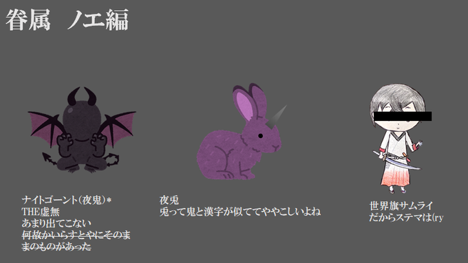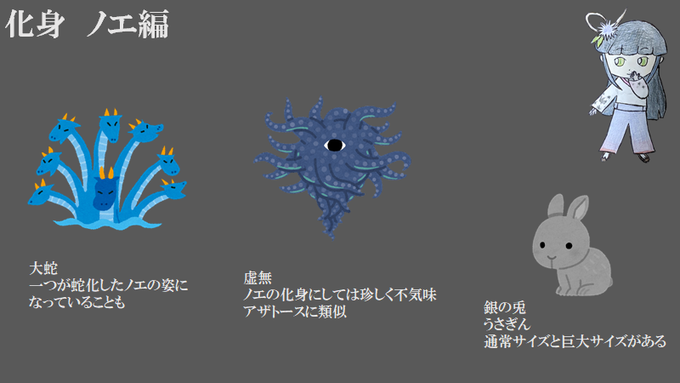ノエの化身と眷属 *がないものはオリジナル 参考サイト:同上 #イルモとノエの日常