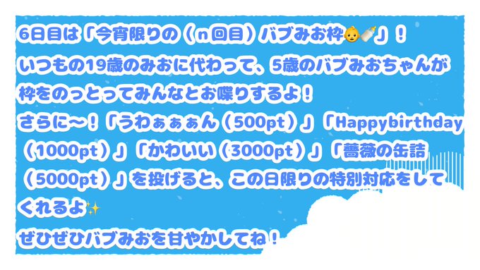 今日21時からは「バブみお枠👶🍼」!