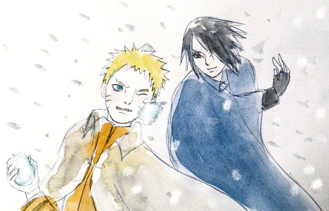 #naruto版深夜のお絵描き60分一本勝負 お題【雪遊び】 この二人が本気出すと地形変わるのでほどほどでお願いします(´ω`)!