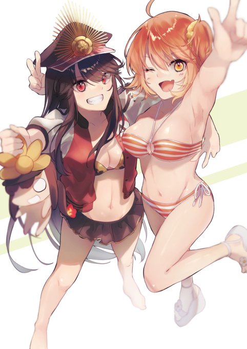 水着ノッブとブリリアントサマーのぐだ子ちゃん 水着女子でわいわいしてほしい #FGO
