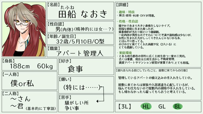 東雲邸のお客様【@D_M_H_P 】へ参加します。 穏やかで家庭的なお兄…お姉…さんです。 恋愛はそんなに積極的ではないですが基本的に広く世話焼きです。 よろしくお願いします。 #東雲邸_お客様名簿