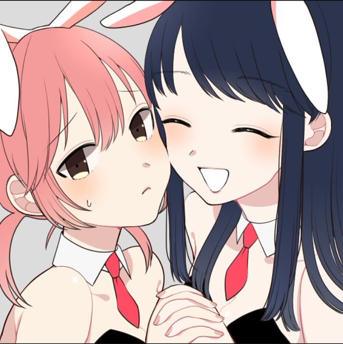 お揃いのバニー着て写真撮ろうとする七海先輩と嫌がりながらも流される侑の図。 #百合メーカー