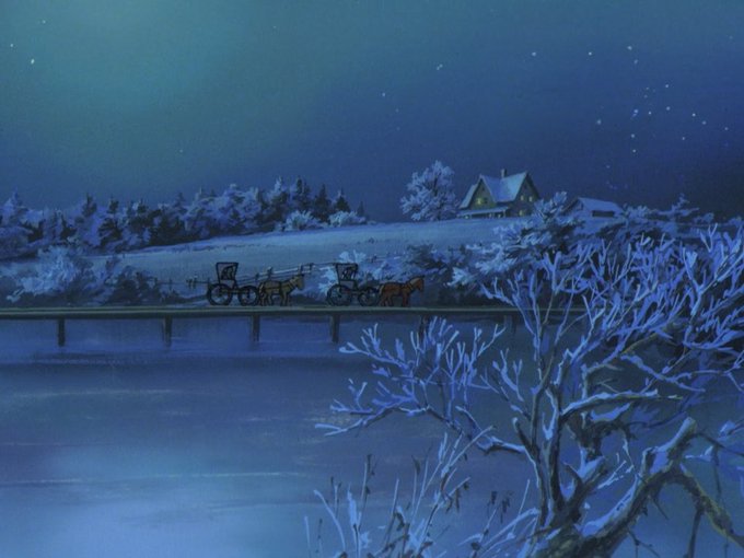 I was already in love with fall in this show and now winter comes along and it manages to be even more impressive somehow. This night-time lighting is to die for. #AkageNoAnne
