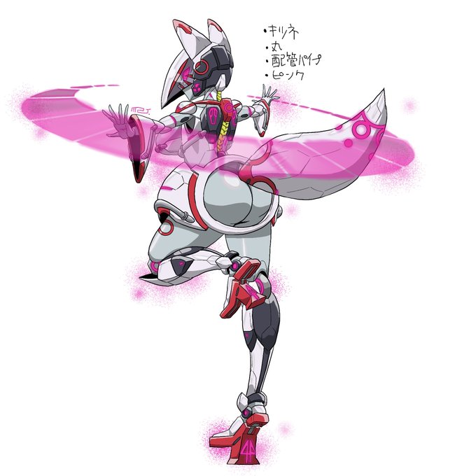 毎週兄弟とやってるキャラ被りロボ娘デザインゲーム!第44弾!! 今回は… ・キツネ ・丸 ・配管パイプ ・ピンク の要素を使って描いてみました。 兄弟1枚目←→2枚目僕 #ロボ娘 #キャラ被りデザインゲーム #robotgirl