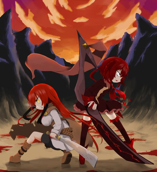 いりあのさん[@hotyo3]の子の帝角ちんとうちの子セット描かせて頂きましたっヽ(.=ω=)ノ 見えないけど敵と戦ってる風。