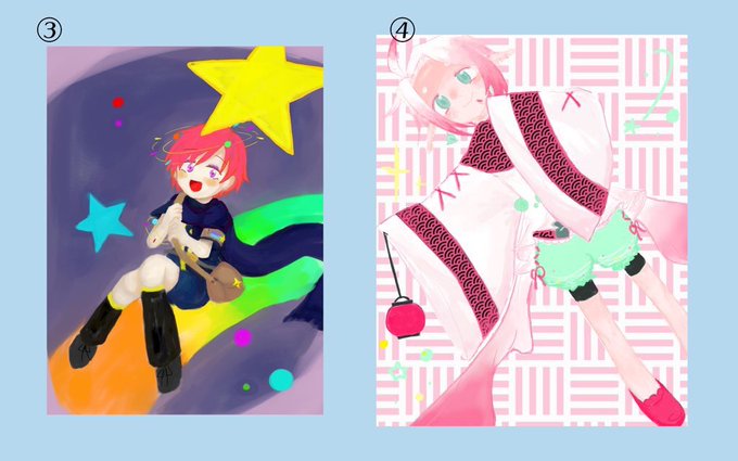 #誰のキャラデザだゲーム キャラデザゲームしました!やったあ!!!私が描かせてもらったのは②ちゃんです!! リプに私のデザインはどれでしょうアンケを繋げるので是非お願いします🧨