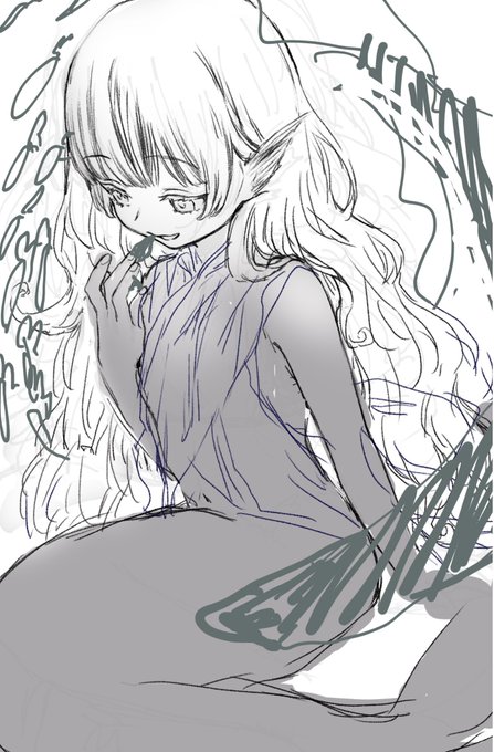 本日の画像は深海の遺跡 竜宮城をイメージしたイラストのラフです。間に合わなかったのですが、お顔かわいいので供養させてください🥲