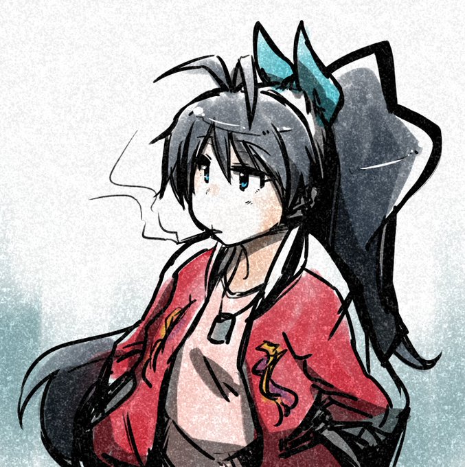 Suicaさんの提案から描いた、くまみこの響な響(あんま普段の服と変わらん) ちなみにくわえてるのはたばこではなくあまりにもレロㇾロしてるので煙が出てるキャンディーです()