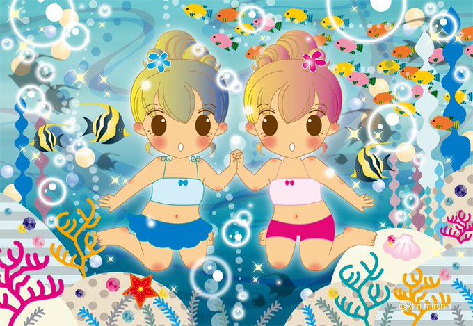 過去絵ですが海の日ということでアップ☆パンジャとカオリがキラキラな海へダイブ!