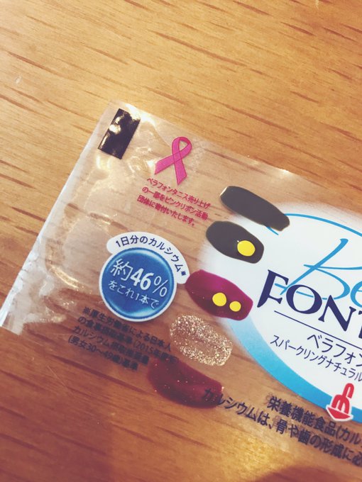 ペットボトルに巻いてあるプラでネイルの色味確認してるんだけど、これどうかな…カーキが制服、黄色がボタン、赤がパーカーで金が髪…。